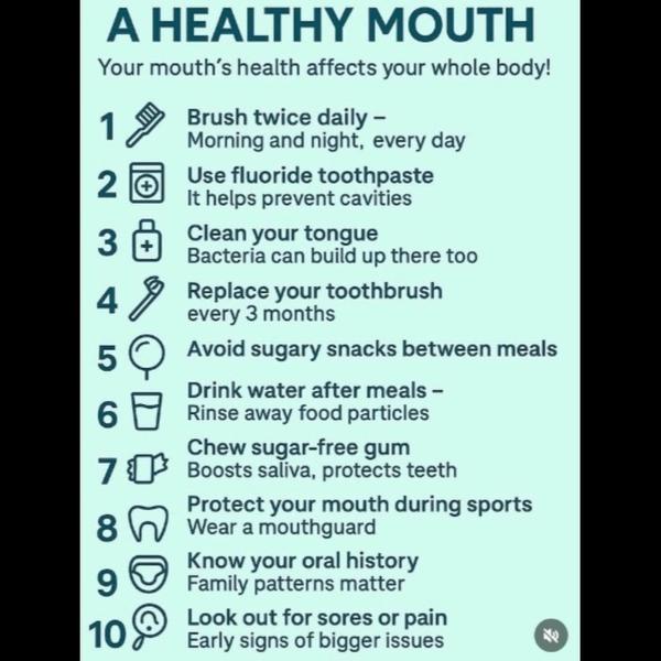 🦷 A HEALTHY MOUTH Your mouth’s health affects your whole body! आपके मुँह का स्वास्थ्य आपके पूरे शर...